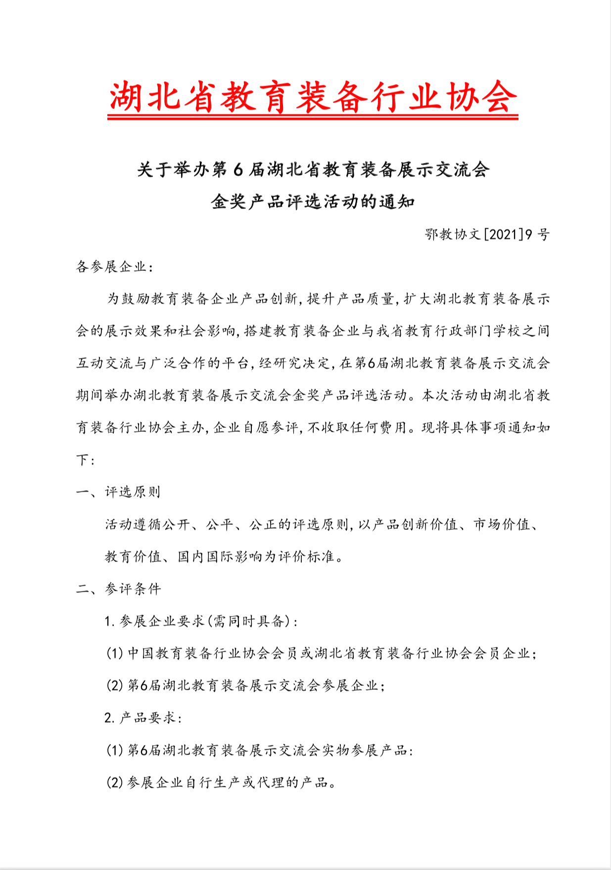 关于举办第6届湖北省教育装备展示交流会金奖产品评选活动的通知