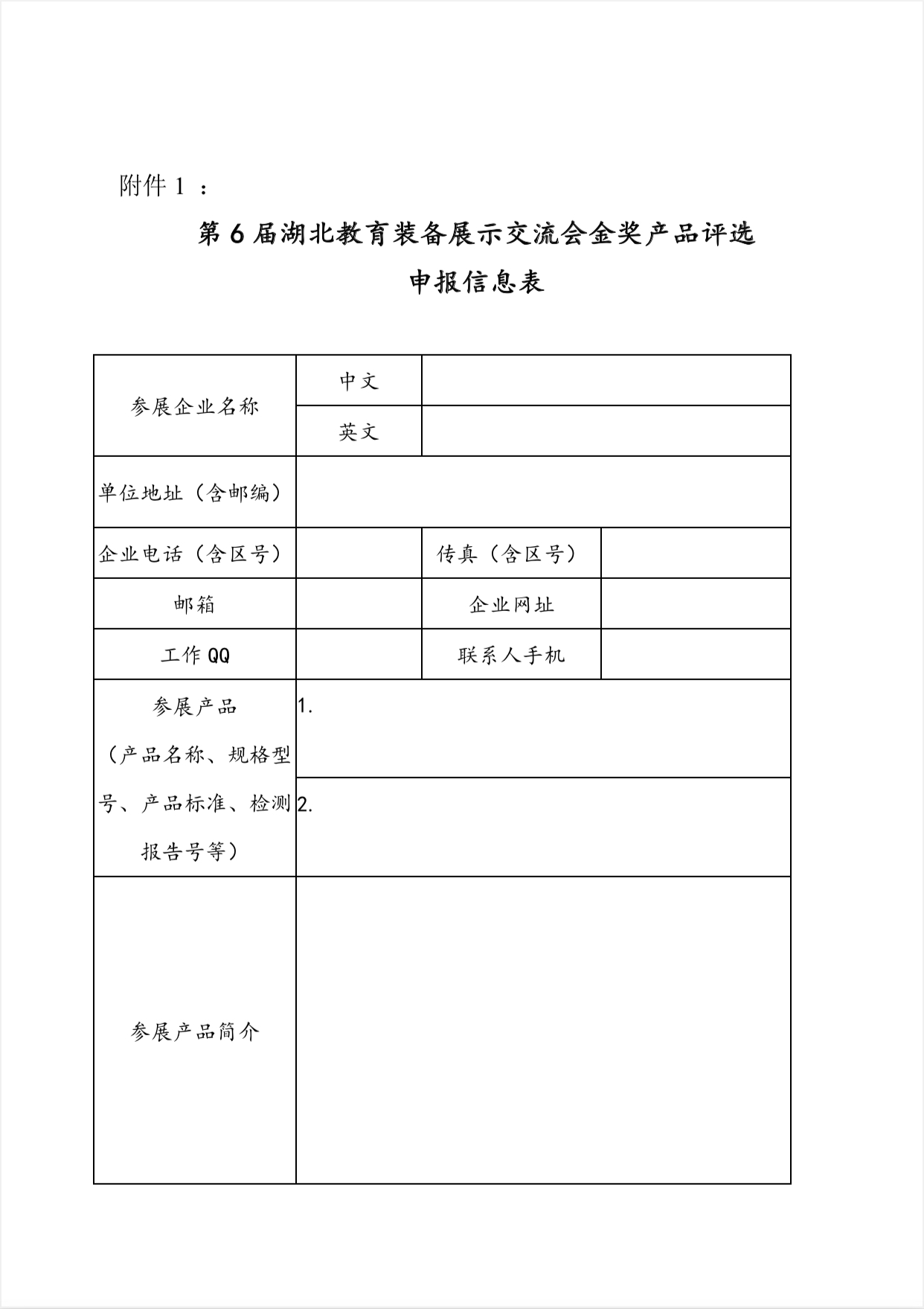 >关于举办第6届湖北省教育装备展示交流会金奖产品评选活动的通知